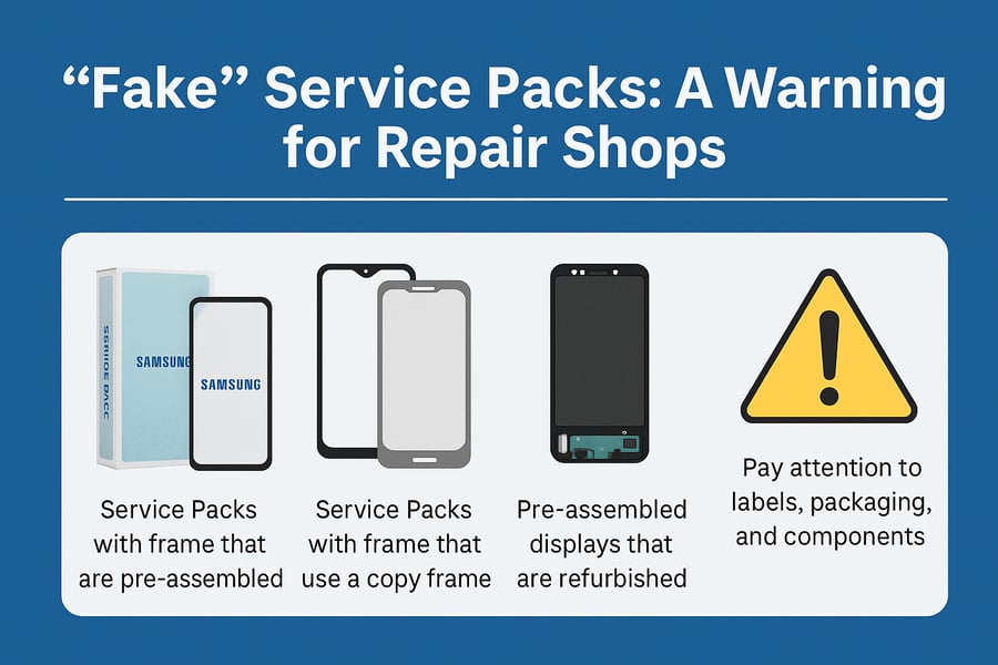 Deze producten worden vaak gepresenteerd als originele Service Packs, terwijl ze dat niet zijn. En dat vormt een probleem. Niet alleen voor de kwaliteit van de reparatie, maar ook voor het vertrouwen dat klanten in jou als reparateur hebben.